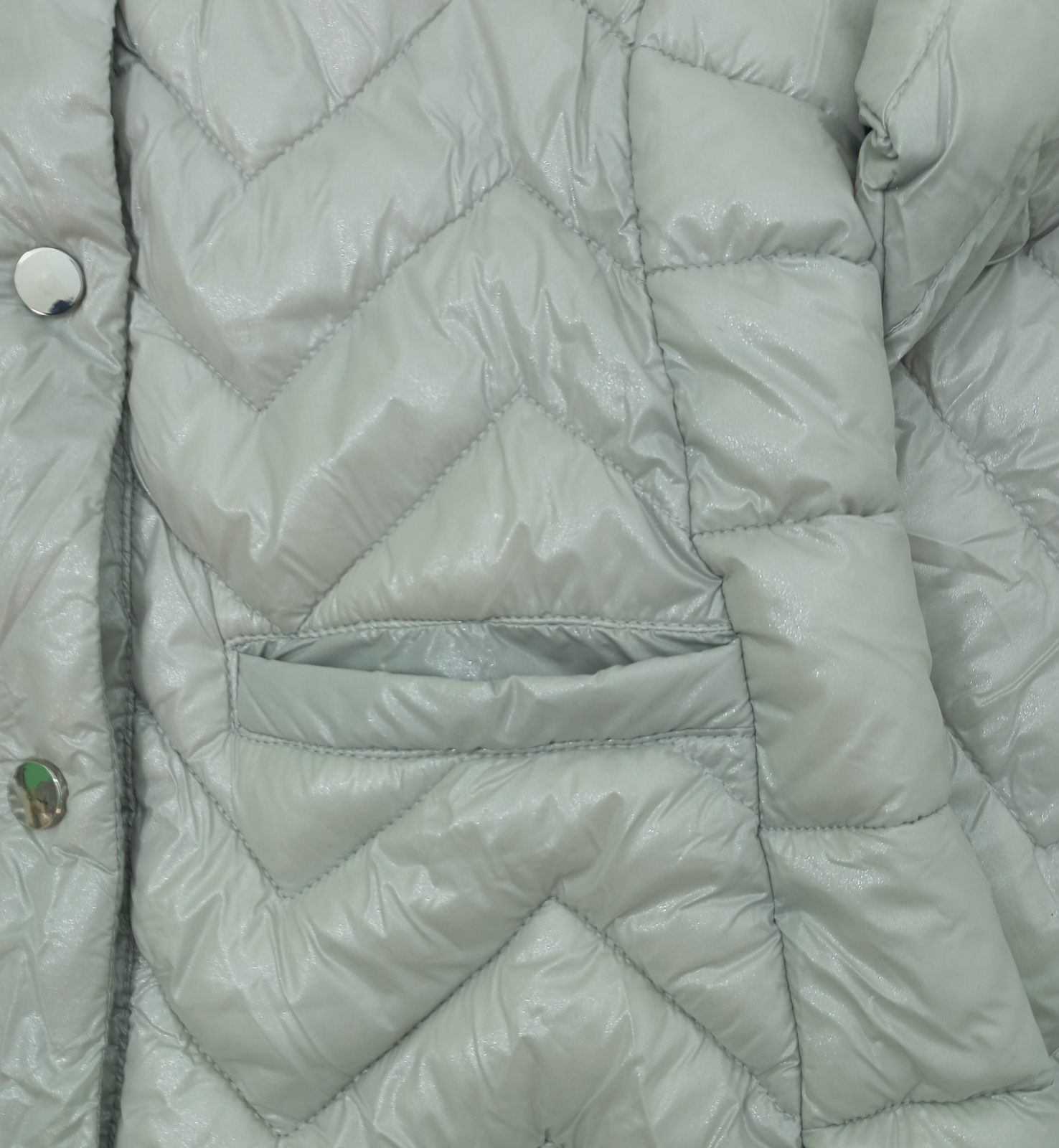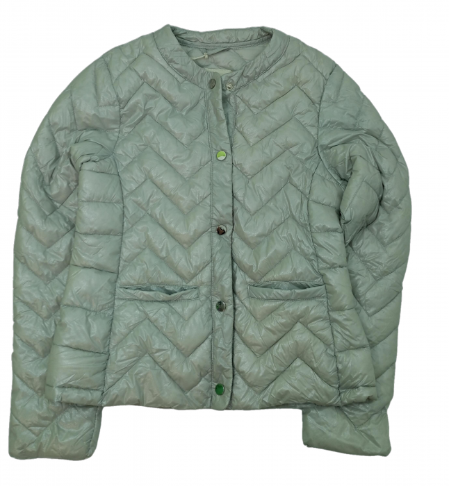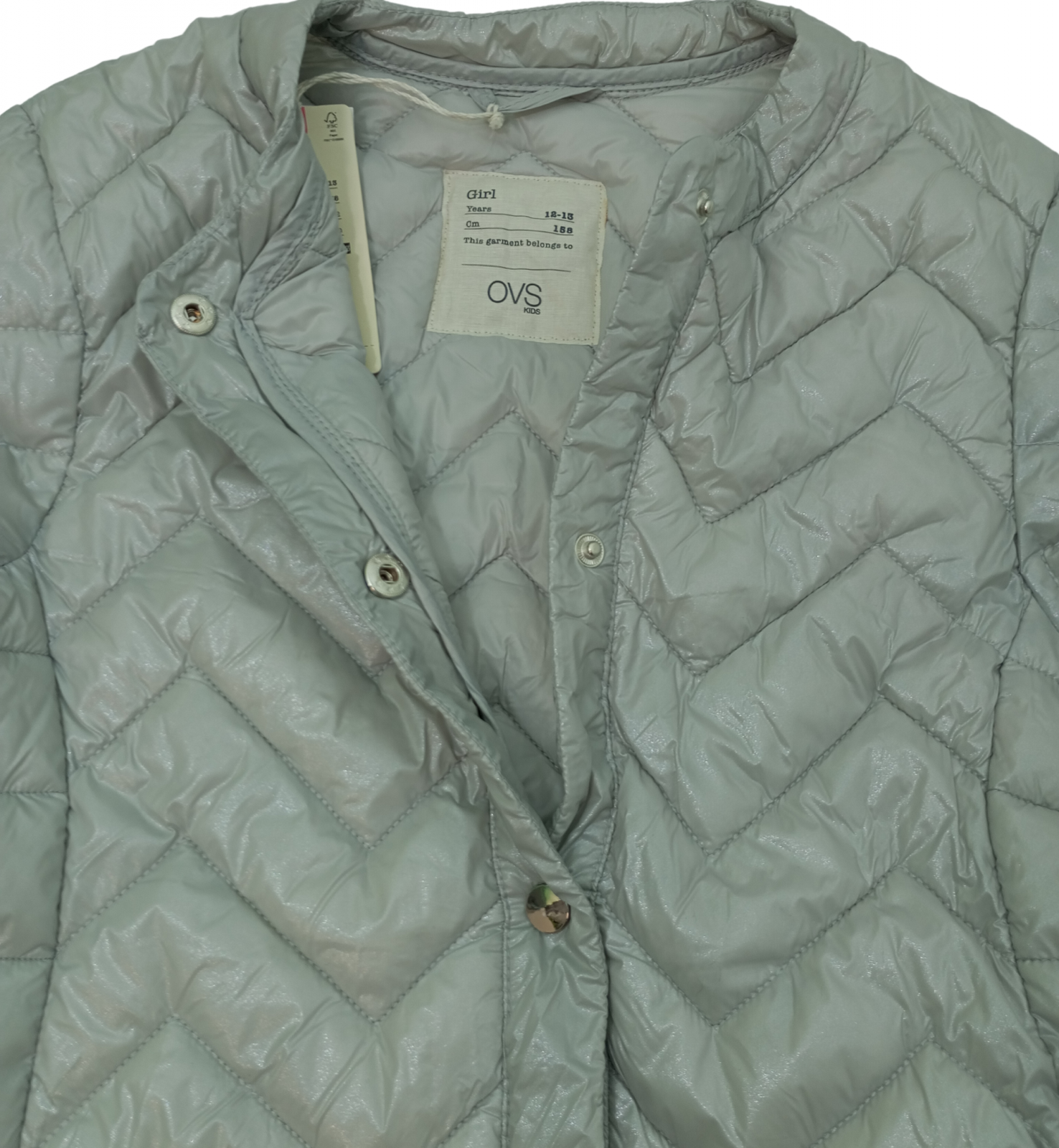 Geaca fete cu sclipici, OVS, model geometric, Poliamida/poliester, Gri/Argintiu , 158 CM, 12-13 ani Exterior poliamida 100%, umplutura poliester 100%. Inchidere pe capse, 2 buzunare frontale.
